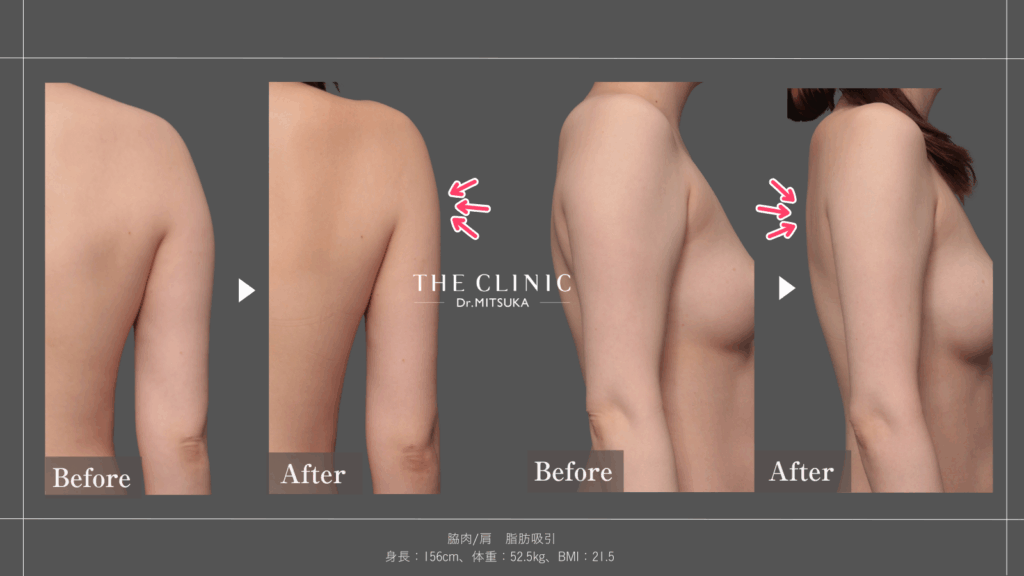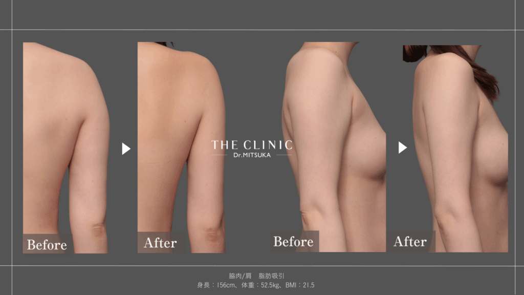 本ゲストは、他院で二の腕の吸引を行っていますが、脇に近い部分に脂肪が残っていて、肩は未吸引、脇肉も未吸引という状態で相談にこられました。
